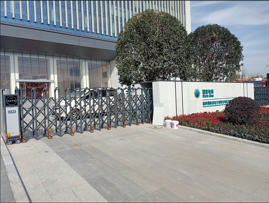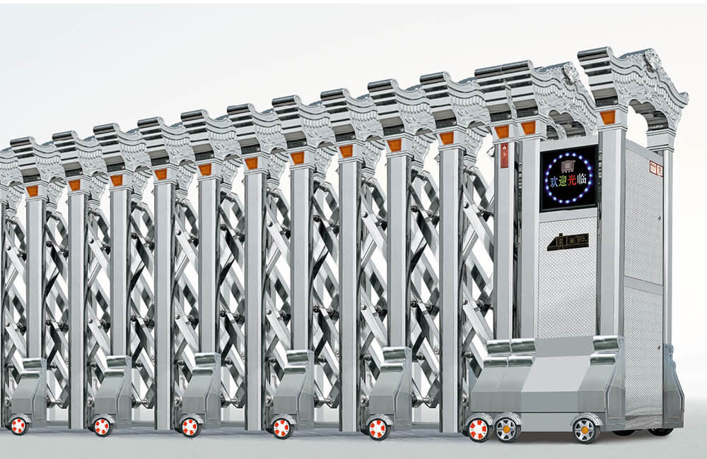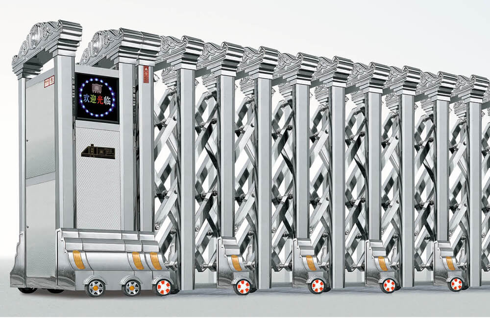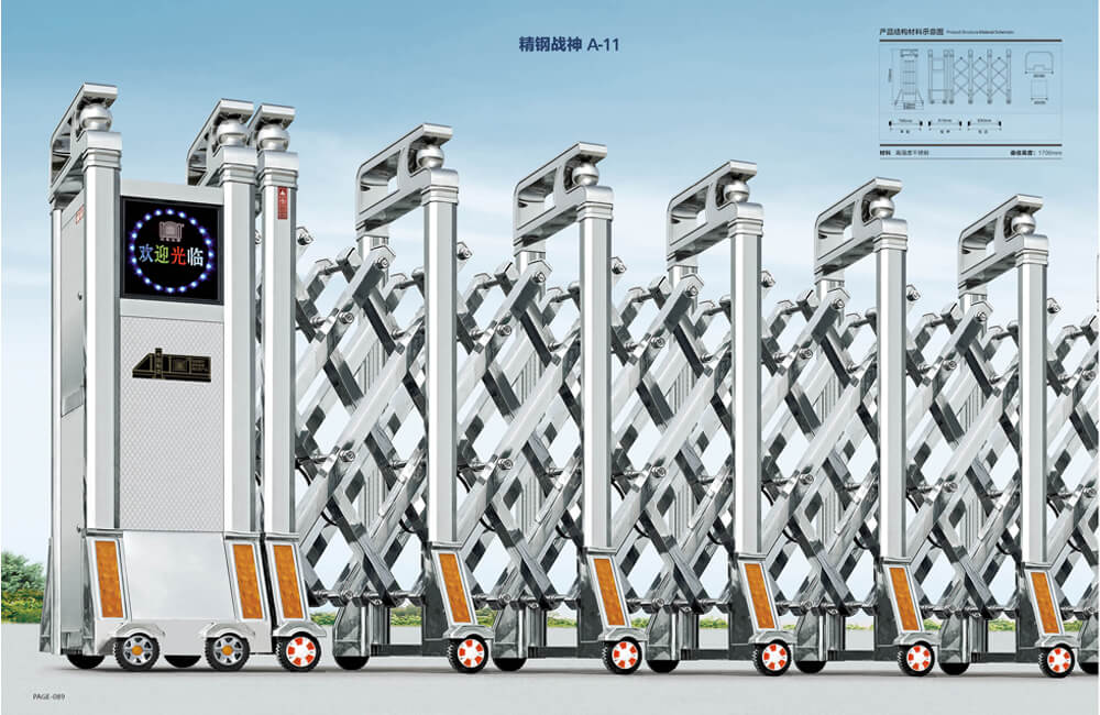 動(dòng)伸縮門(mén)主要有伸縮門(mén)體、機(jī)頭、控制器三部分組成。